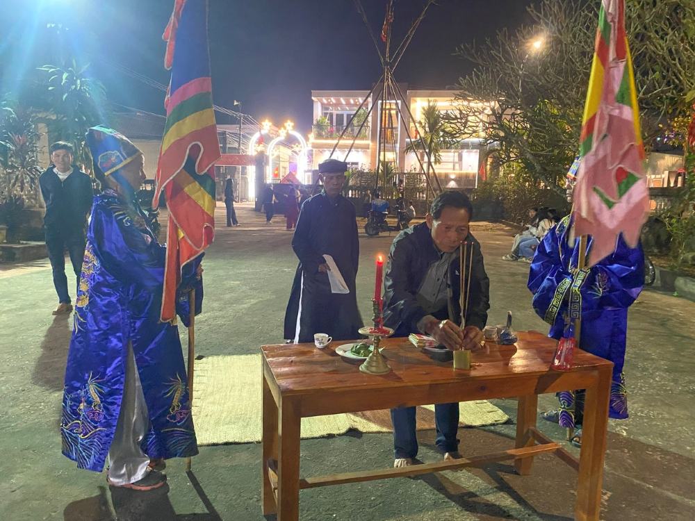 Before the moment of New Year's Eve, people perform rituals, carrying fire from the temple area in the mountains to the village communal house. After completing the rituals, right at the moment of New Year's Eve, the sacred fire is lit into a dragon mannequin for people to ask for fire to bring home with the wish for a new year of peace and luck.