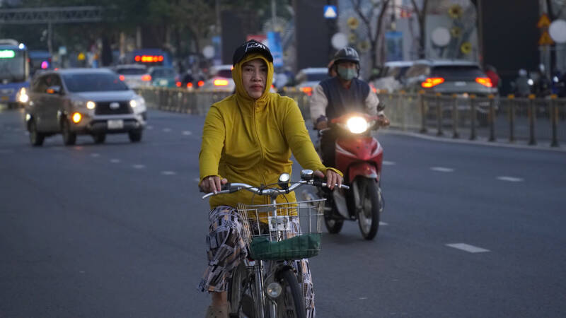 On routes such as Truong Chinh, Dien Bien Phu, Pham Van Dong... many people who go to work early have to wear thick coats, wrap scarves around their necks. Some people also cover themselves with thin blankets to keep warm.