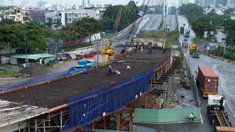In mid-November, the An Phu intersection construction site (HCMC) recorded a dense construction schedule. The sound of drilling machines, rotating cranes and each convoy of material vehicles continuously coming and going shows that this important traffic route is entering the acceleration stage. At many locations, new concrete blocks have been poured, the steel girder system is being extended, the shape of the project is becoming increasingly clear.