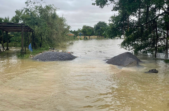 River levels rise rapidly. At 04.00 on October 30, Kien Giang River in Kien Giang was at 10.25 m, 0.75 m below alert level 2; at Le Thuy 2.55 m, 0.15 m below alert level 3. Ben Hai River in Gia Vong exceeded alert level 1 by 1.08 m; Hieu River at Dau Mau exceeded alert level 1 by 0.66 m; Thach Han River in Quang Tri Ward exceeded alert level 2 by 0.44 m; O Lau River in My Chanh exceeded alert level 2 by 0.1 m. In the next 6'12 hours, the flood of Kien Giang River in Le Thuy may increase to 2.9 m, 0.2 m above alert level 3.