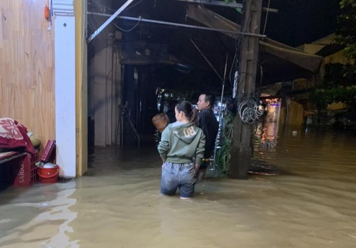 Due to prolonged heavy rain combined with hydroelectric reservoirs releasing water to regulate large flows, on the evening of October 26, the water level of Vu Gia - Thu Bon river rose rapidly, causing many low-lying areas in Da Nang to be deeply flooded and locally isolated.