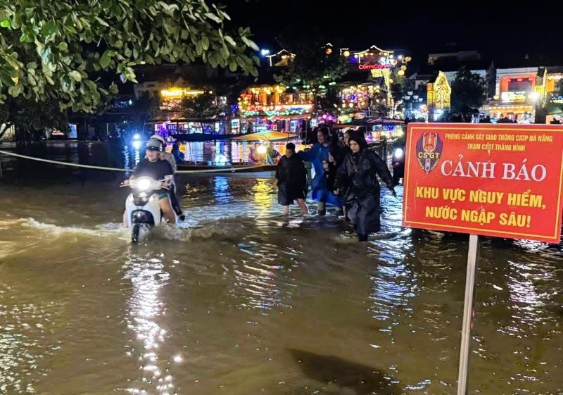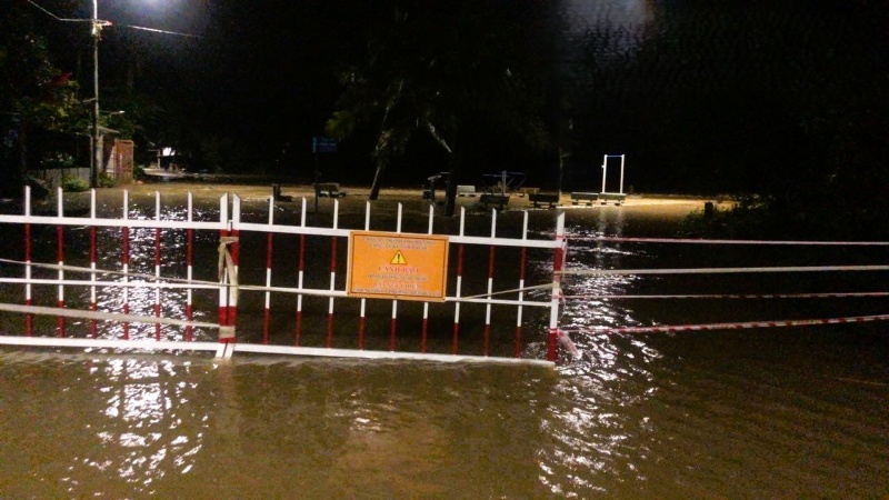 In the early morning of October 27, in the communes of Thang Binh, Que Son, Nong Son, Hiep Duc, Nam Giang, there continued to be very heavy rain, the authorities still used storm surges to patrol and blockads on DT611 routes (Nong Son commune), Ba Ngan bridge (Nam Phuoc commune), Dong Binh dam, Hoi An ancient town... to ensure traffic safety, instruct people not to go through deeply flooded areas.