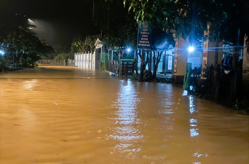In the flood center of Dai Loc, the river water rose rapidly, causing the Ai Nghia bridge and the Foreign Trade bridge to be heavily flooded, many households were busy moving their belongings at night. "The water level rose rapidly every hour, we had to mobilize the whole family to move our belongings to escape the flood at night," Mr. Tran Van Truong (42 years old, Dai Loc) confided.