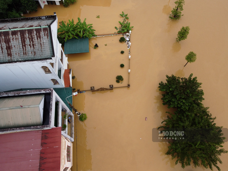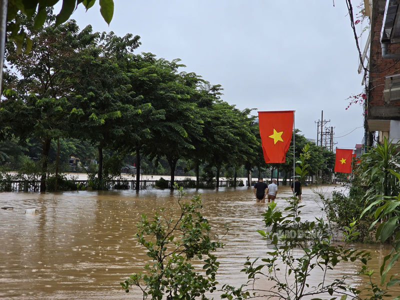 Previously, at around 11pm on September 30, the main streets (old Hop Giang Ward) Pho Cu, Pho Hien Giang - Cau Ngam 2 area, Pho Kim Dong, Pho Vuon Cam, and Pho Vuon Cam had rising river water. Some flooded areas were 1 to 1.5m deep from the road surface.