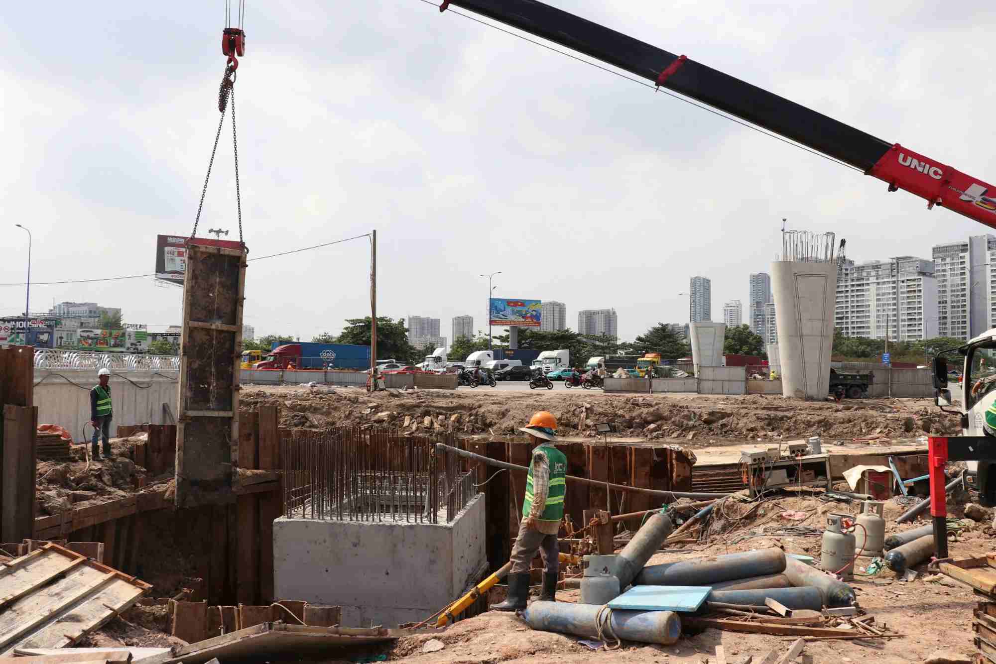 On March 17, recorded at the An Phu intersection construction site, hundreds of engineers, workers and machinery are constructing overpass branches.