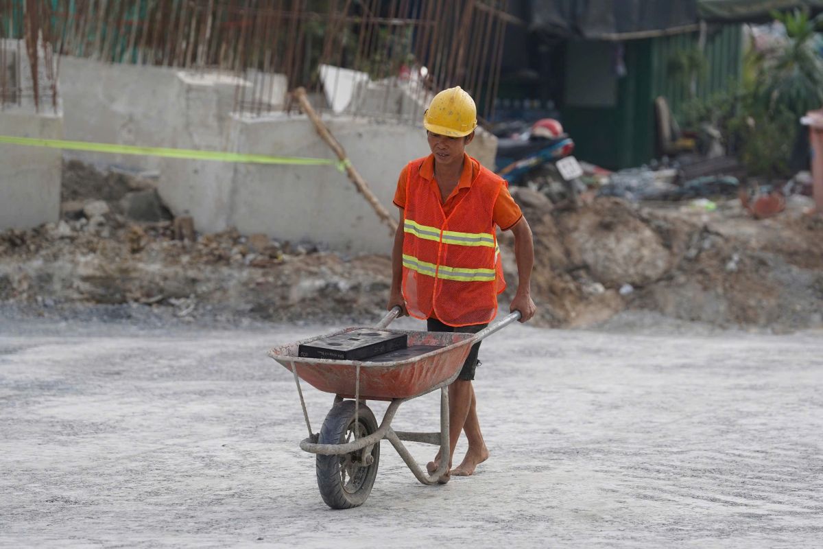 Route No. 2 (running from Cat Lai ferry, following the My Thuy bridges) is currently being leveled, creating a roadbed.
