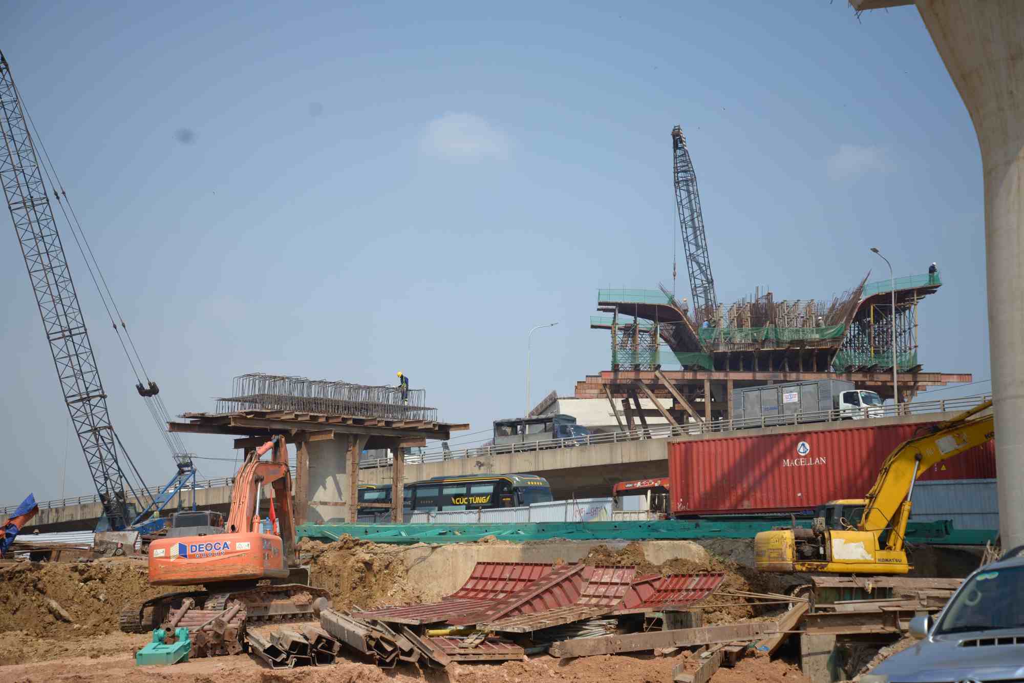 In some other locations, construction units are still installing bridge pillars, scaffolding and formwork to prepare girders for the approach bridge spans up and down the intersection.