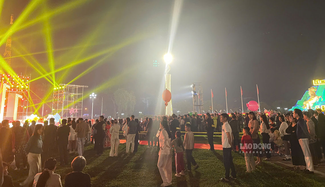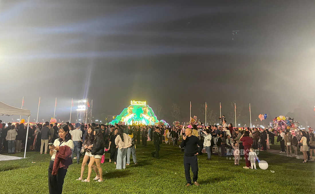 According to Lao Dong's records, in the Lao Cai ward area, from 7 pm on the 29th of the twelfth lunar month, people and tourists gathered crowdedly around Ho Chi Minh City Park area.