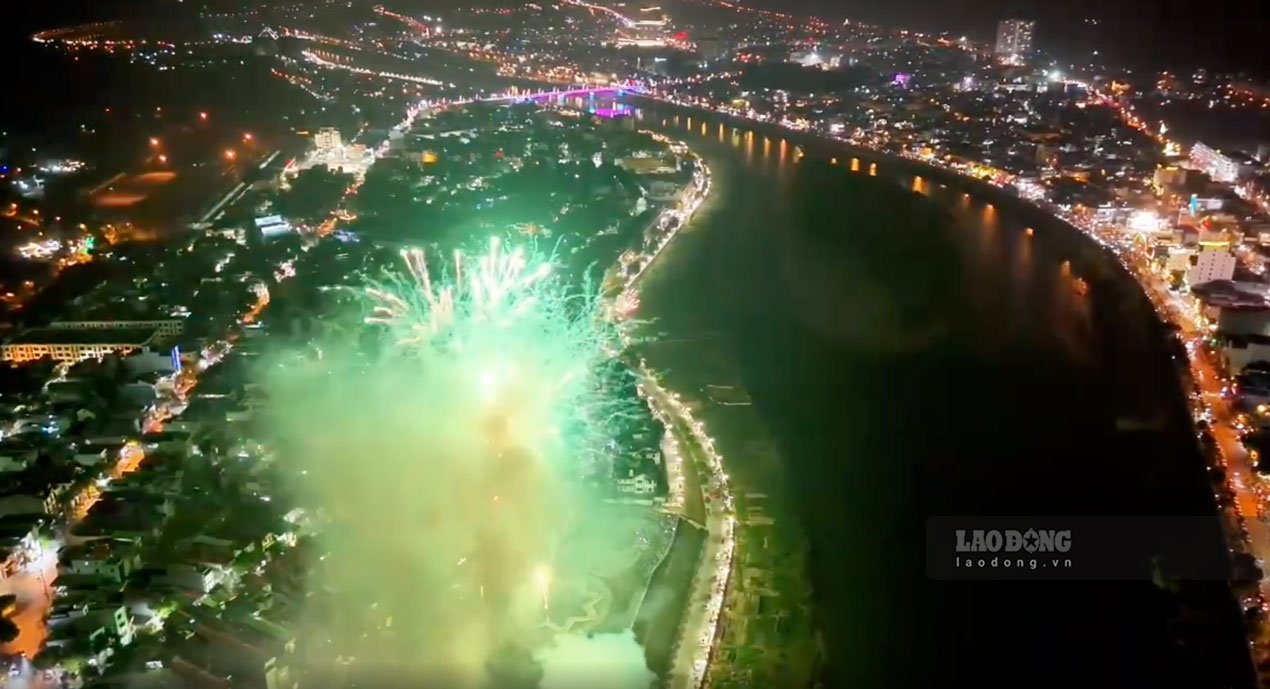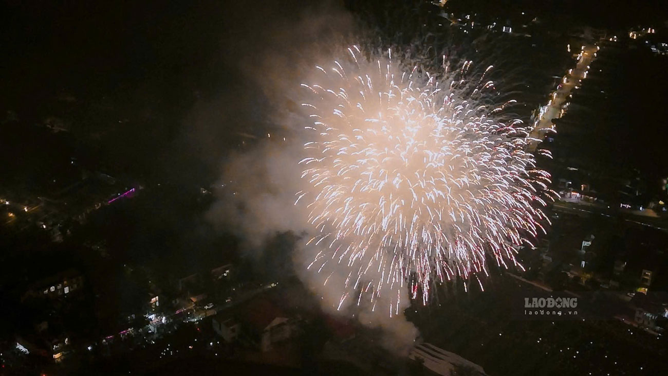 In the sweet cold of the border region, at exactly 9:30 pm, people clasped their hands together, their eyes looking up at the sky. Crisp explosions rang out, fireworks shone brightly, reflecting into the misty mist, creating a shimmering, magical scene.