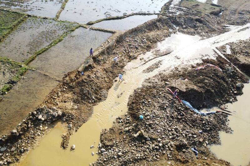 At the scene, the police agency seized many exhibits including water pumps, water pipes, hoes, shovels, screening and tools serving mineral exploitation.