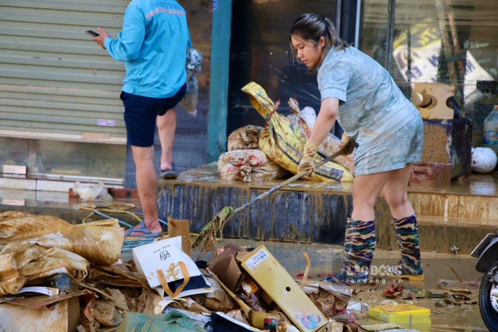People and the civil defense force, youth union members collected garbage, mud, used water pumps and vehicles to clear flooded areas, ensuring hygiene and safety of travel.