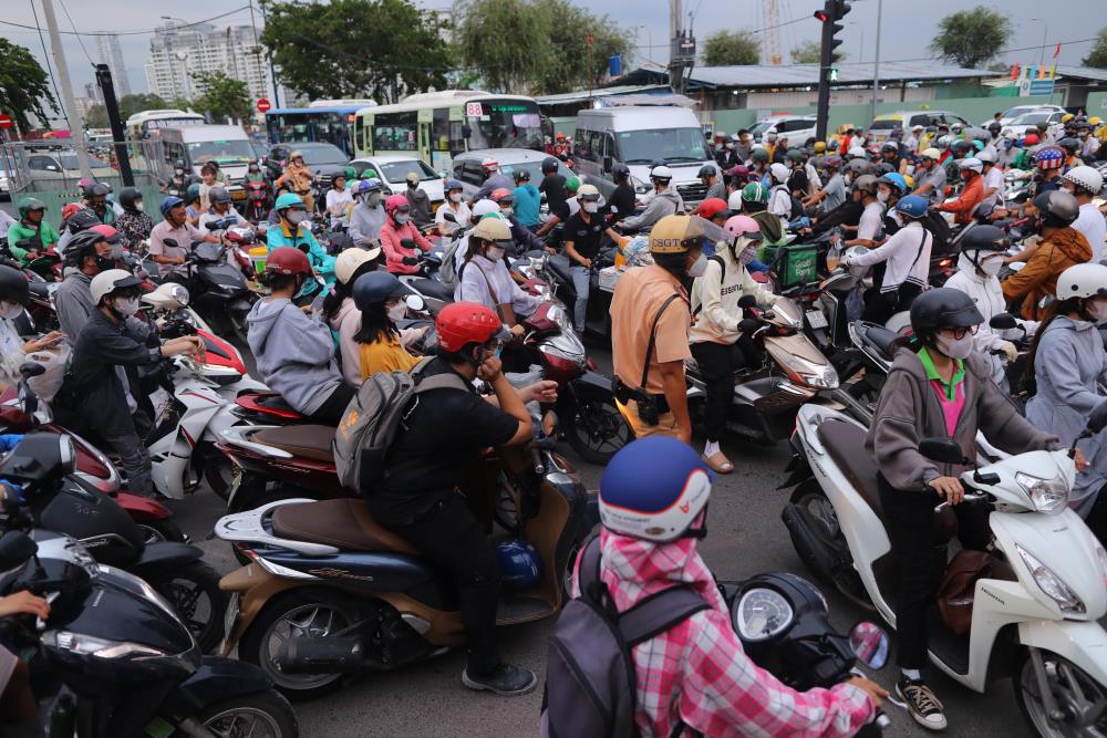 TPHCM - Sau khi phân luồng lại giao thông tại nút giao An Phú và giao lộ Đồng Văn Cống - Mai Chí Thọ (TP Thủ Đức), giao thông trở nên hỗn loạn, kẹt xe tứ phía kéo dài hàng tiếng đồng hồ vào giờ cao điểm.