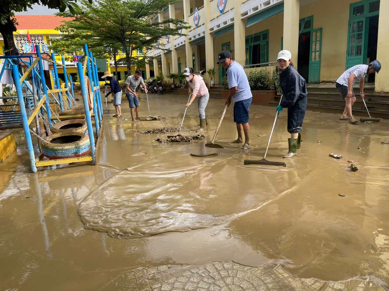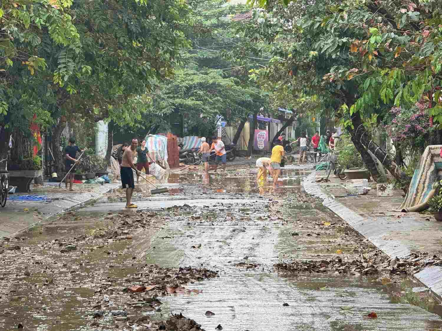 In Hoi An area, the water is still flooded on some roads in the ancient urban area, Cam Kim, Cam Thanh... However, wherever the water recedes, local people focus on clearing mud and garbage to soon restore normal life.