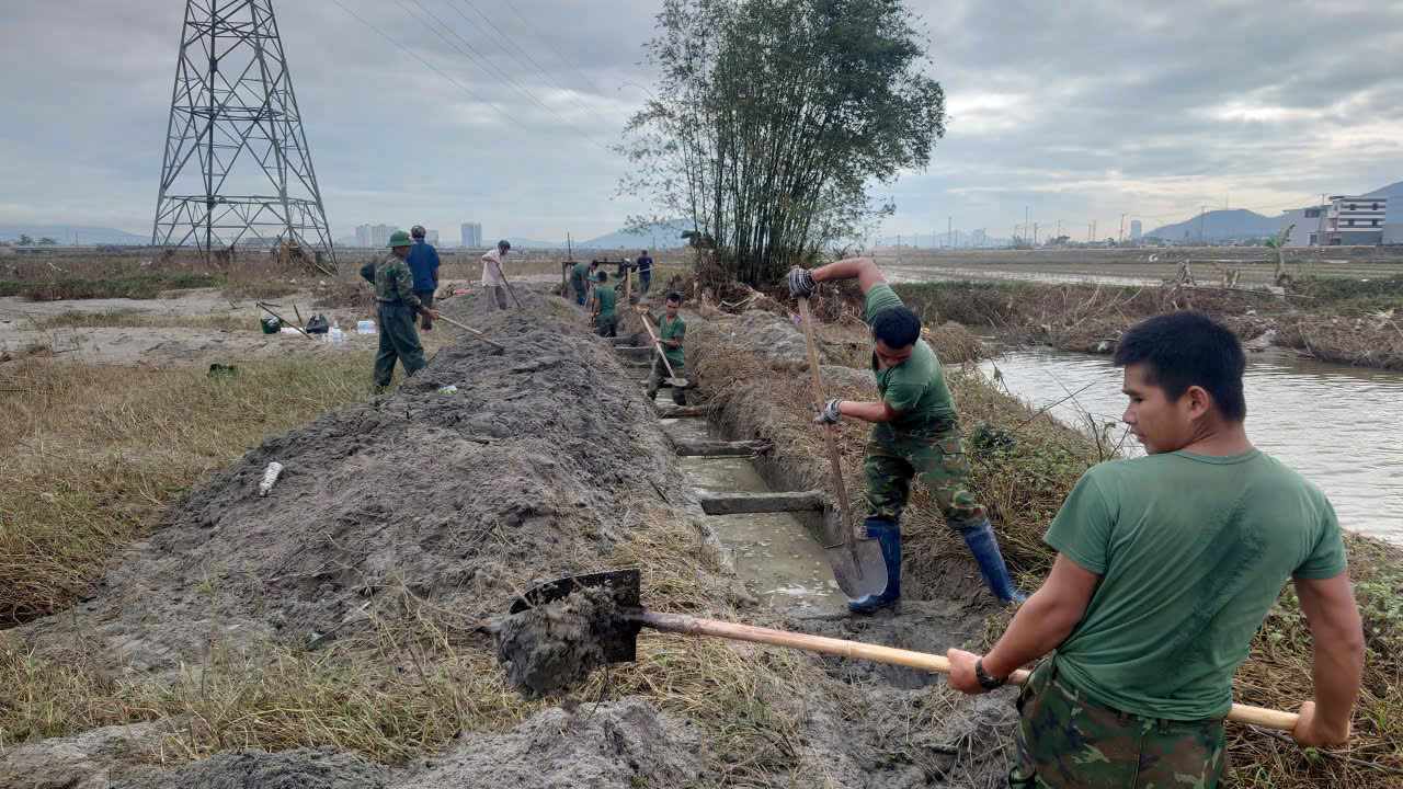 In Quy Nhon Dong ward, the Brigade's forces mobilized 760 workers and 820 mobile vehicles to clean 3 schools, clean houses for 358 households, disinfect and clean more than 44 km of traffic roads. Military medical staff organized examinations and distributed free medicine to over 400 people. The Brigade also transported 120 tons of relief rice, supported 70 households to stabilize their housing and gave gifts to disadvantaged families. At the same time, forces participated in dredging more than 2 km of silted canals, ensuring the flow was cleared.