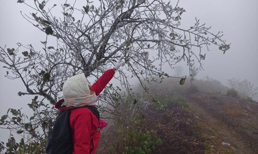 This is the first time in the winter of 2024-2025 that frost has appeared on Lao Than peak, while Fansipan (Sa Pa, Lao Cai) has recorded this phenomenon many times. In Ta Xua (Son La), low temperatures have caused frost to cover the mountain top.