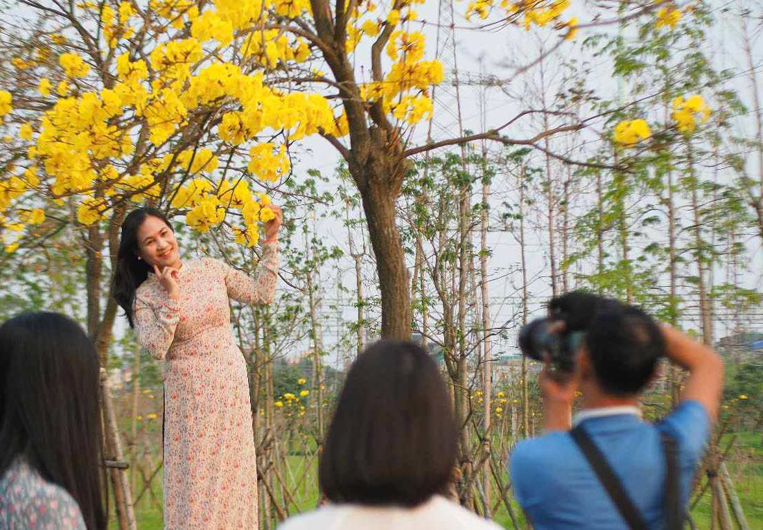 Ms. Vu Thi Ngoc Ngan - a resident living in Xuan Lung commune - shared: "The space here is airy, the scenery is very beautiful because there are rows of trees in full bloom, I have taken many photos today".