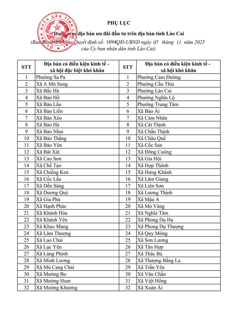 On November 7, Lao Cai Provincial People's Committee issued Decision No. 1894 on announcing investment incentives in the area.