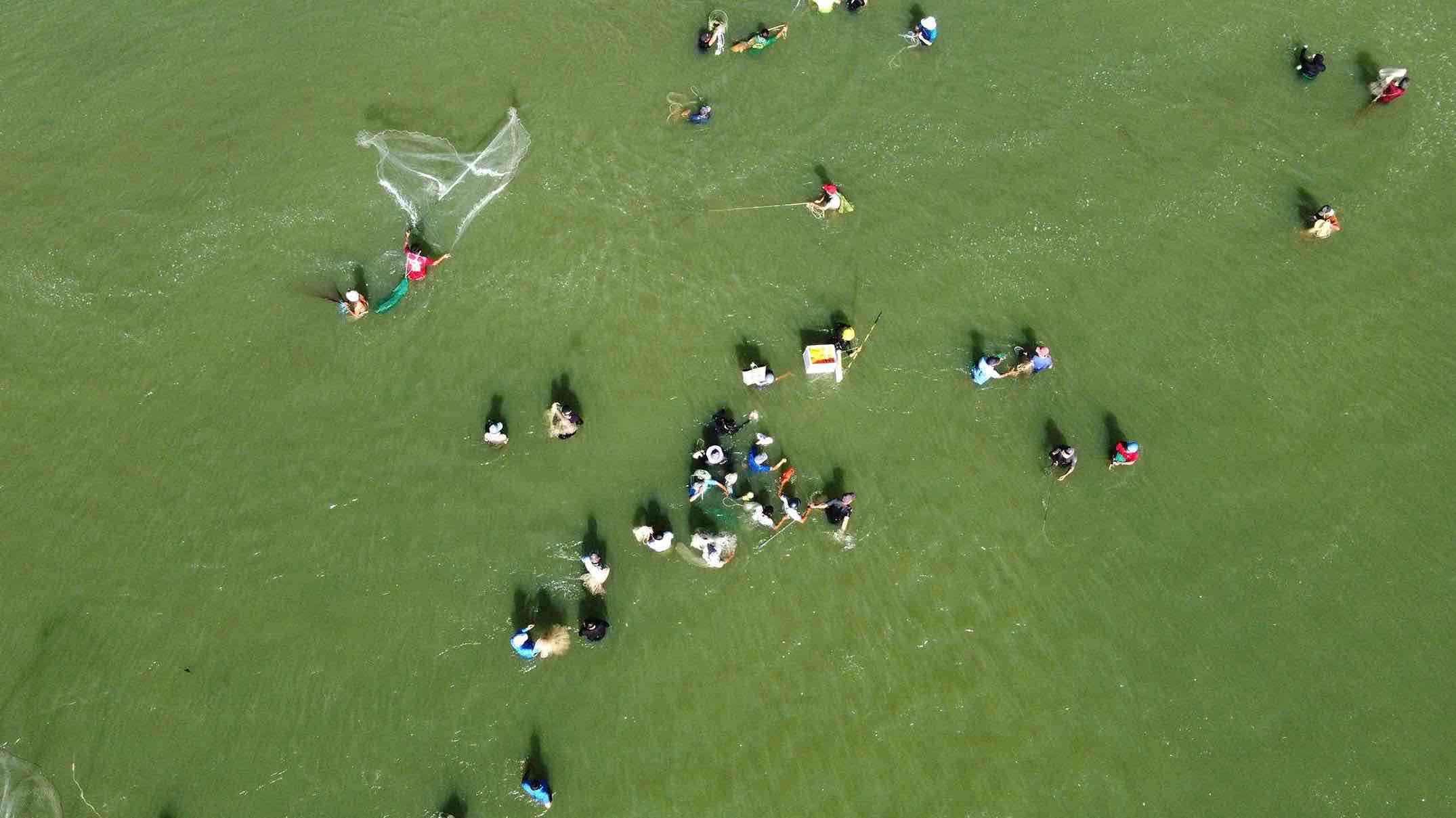 According to local residents, when Tri An Hydropower Reservoir released floodwaters, fish followed the water to the foot of the spillway. When the dam is closed and the flood discharge is stopped, the water will recede, causing fish to get stuck under the spillway area and people can easily catch fish with a "huge" size and weight, up to more than 10kg.