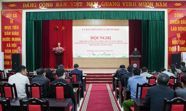 On January 22, Hung Dao Commune People's Committee, Hanoi City, said that the Steering Committee for Enforcement of Hung Dao Commune had organized a Conference to deploy the enforcement of works violating the law on land and construction order in January 2026 in the commune. The conference was chaired by Mr. Tran Duc Thang - Member of the Standing Committee, Standing Vice Chairman of the Commune People's Committee.