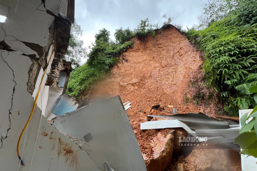 According to Lao Dong Newspaper reporters at the scene on the same day, the boarding house was located near the foot of a hill, with a large amount of landslides.