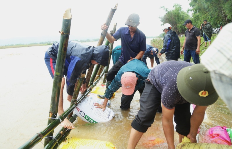 Recorded by Lao Dong reporter at the scene along the banks of Vu Gia river through Khuong My village (Vu Gia commune, Da Nang city), more than 400m of river embankment was devastated. The heaviest section is the 100m long section, large embankments were broken by waves and drifted into the riverbed.