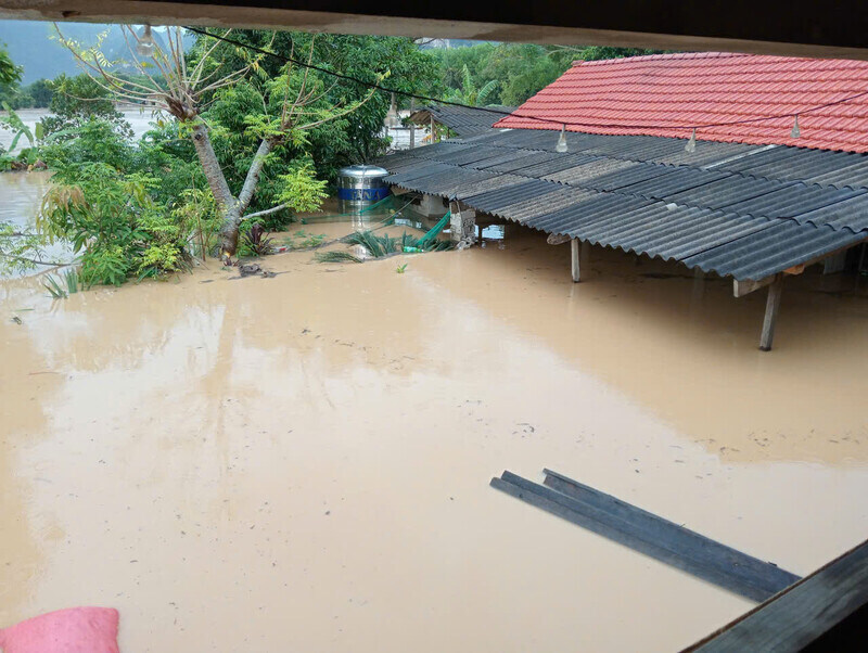 Mr. Hoang Ha's family shared over the phone: "The water rose so quickly that it was now up to my neck. My family still has two young grandchildren and two elderly people, and we need urgent support".