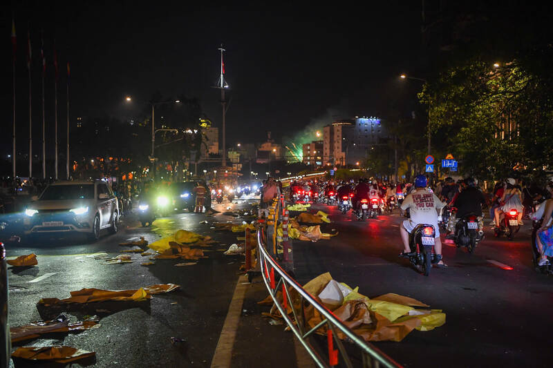 Not only functional forces, many people also actively stayed and joined hands to clean up trash. In many areas with large numbers of people watching fireworks, many young people lingered, actively collecting cans of water and waste paper and putting them in trash bags, contributing to cleaning up public space.