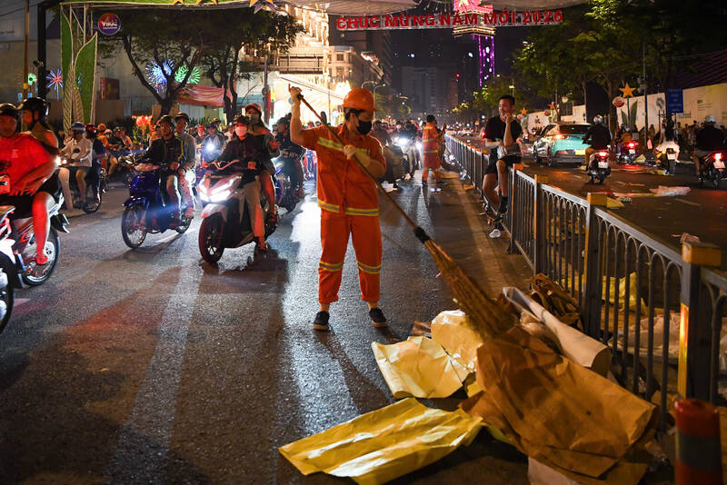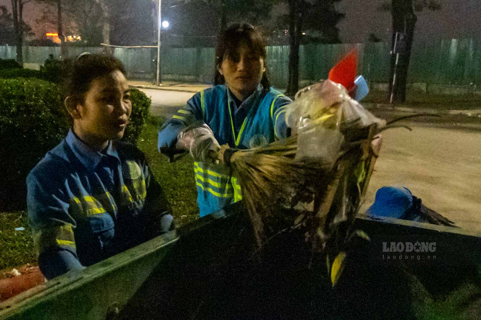 At 0:30 am on February 17 (ie, the 1st day of Tet), the crowd left the My Dinh Stadium area after watching fireworks, which was also when dozens of environmental workers started their busiest shifts of the year.