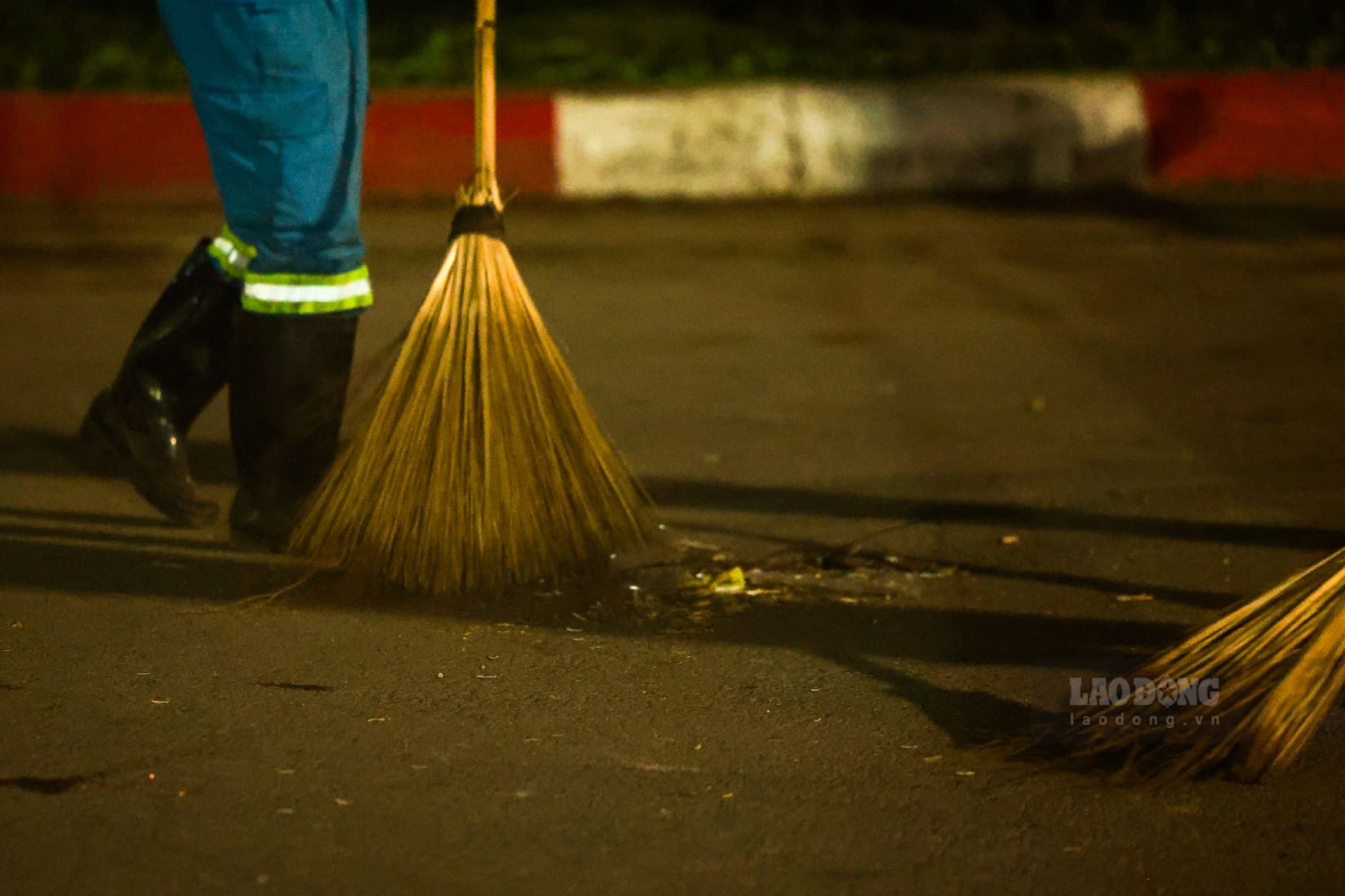 In the central area, the sound of bamboo brooms and specialized vehicles blended into the late night atmosphere. Working groups worked continuously, dividing each section of road and sidewalk to ensure that cleaning was completed as soon as possible.