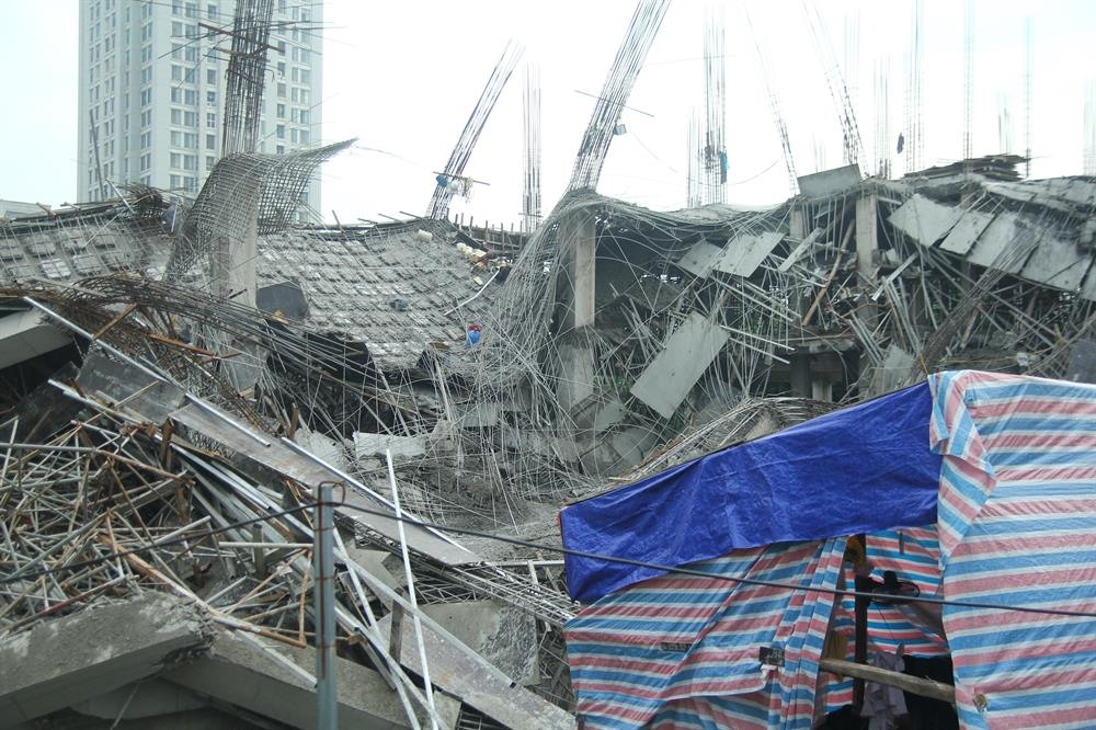 Theo quan sát của PV, cả khu nhà 2 tầng xuất hiện rất nhiều vết nứt, có những vết kéo dài 3 – 4m đã được trám lại bằng xi măng. Cả dãy nhà nghiêng hẳn về phía sau… có thể sập, đổ lúc nào không biết. Nhất là về mùa mưa.