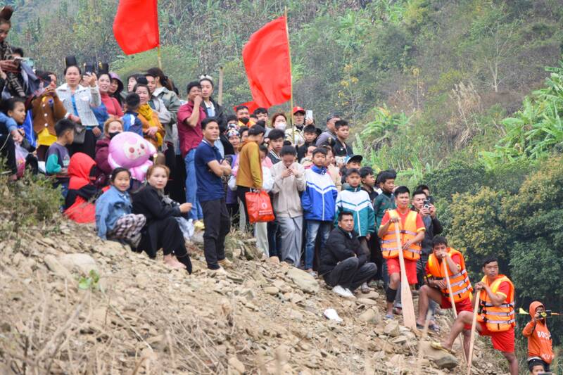 Along both banks of the river, a large number of people and tourists stood crowded on the alluvial ground, enthusiastically cheering, adding momentum for the racing teams to break through the waves to reach the finish line.