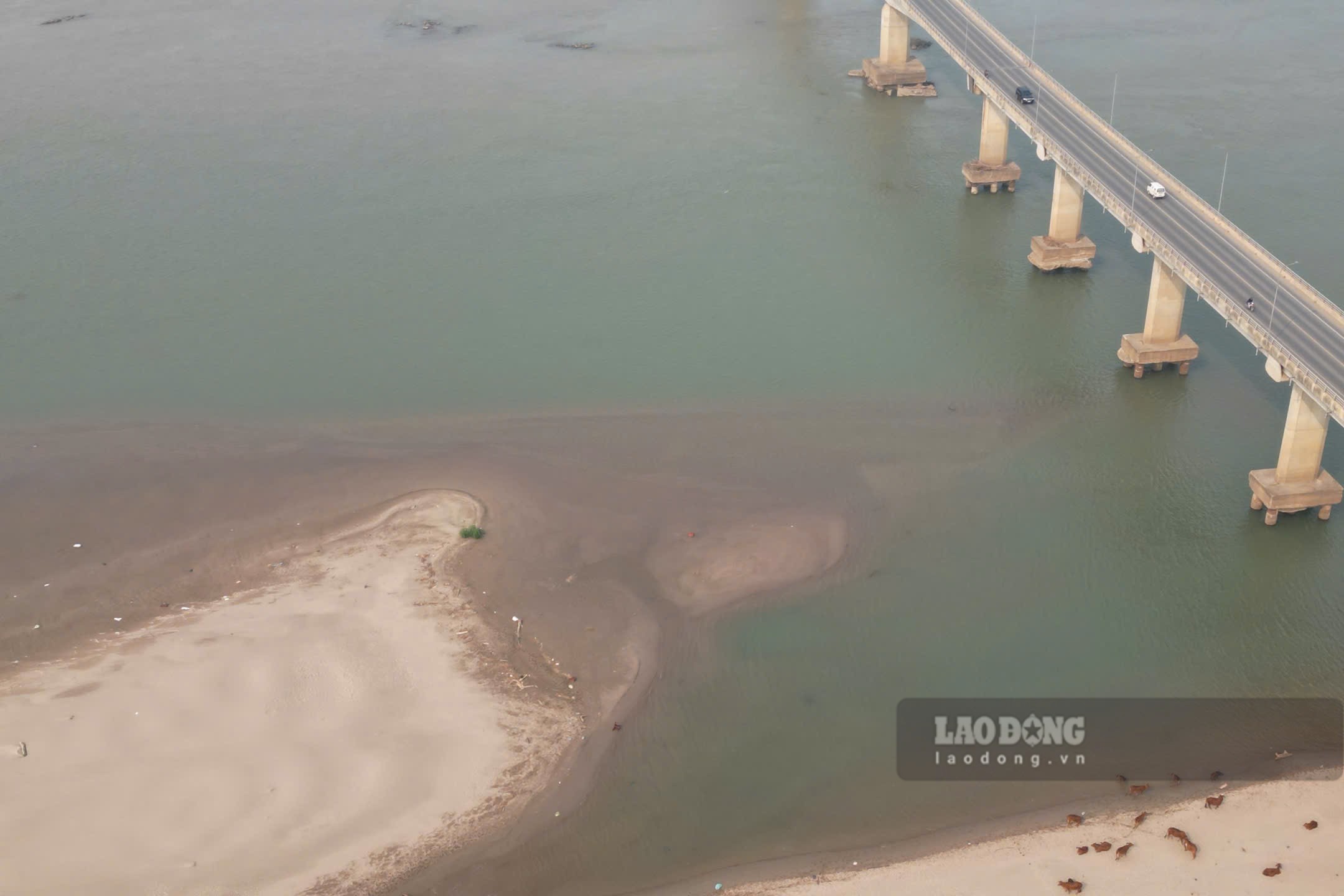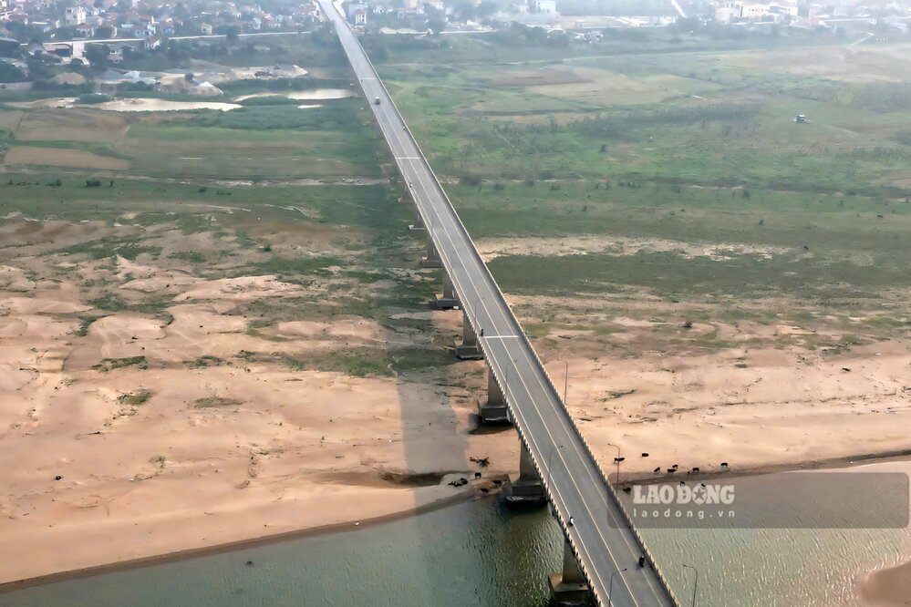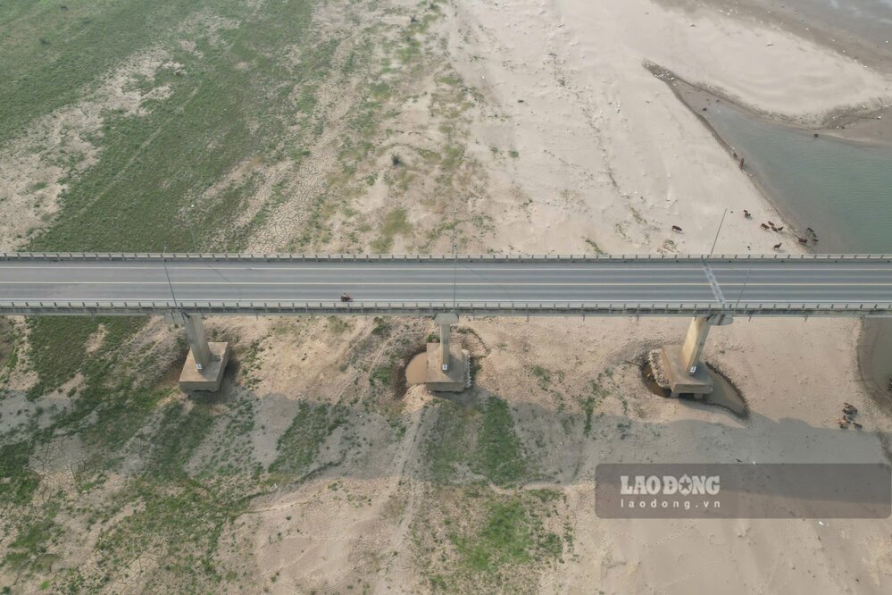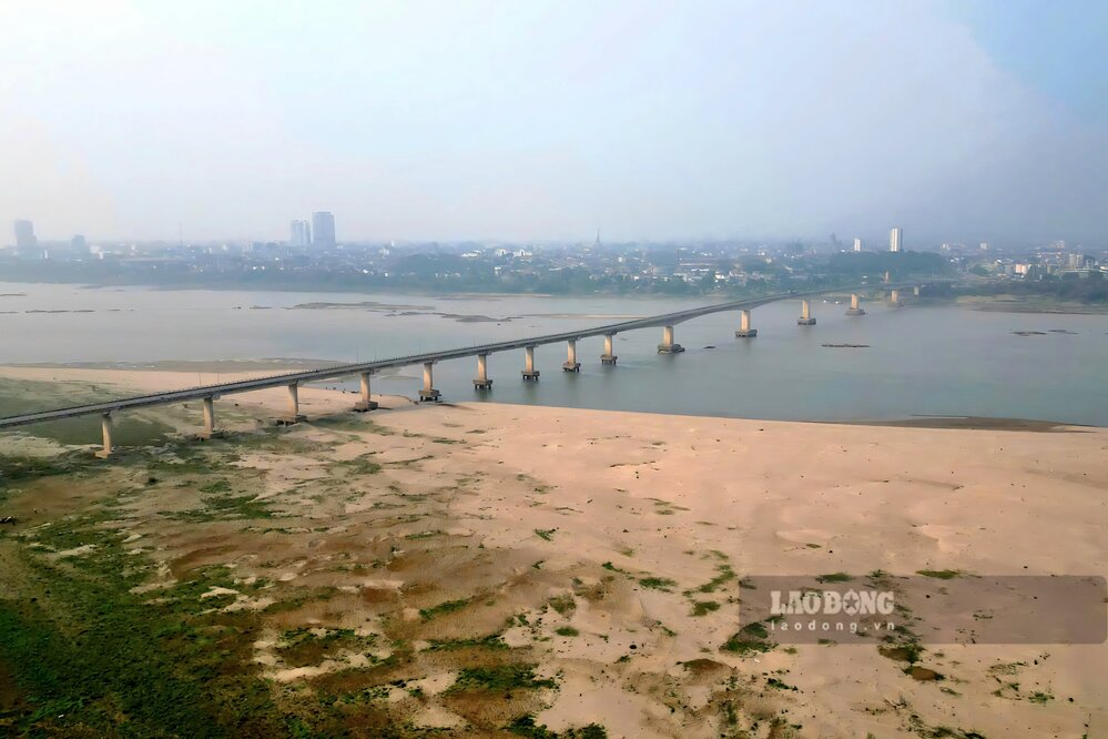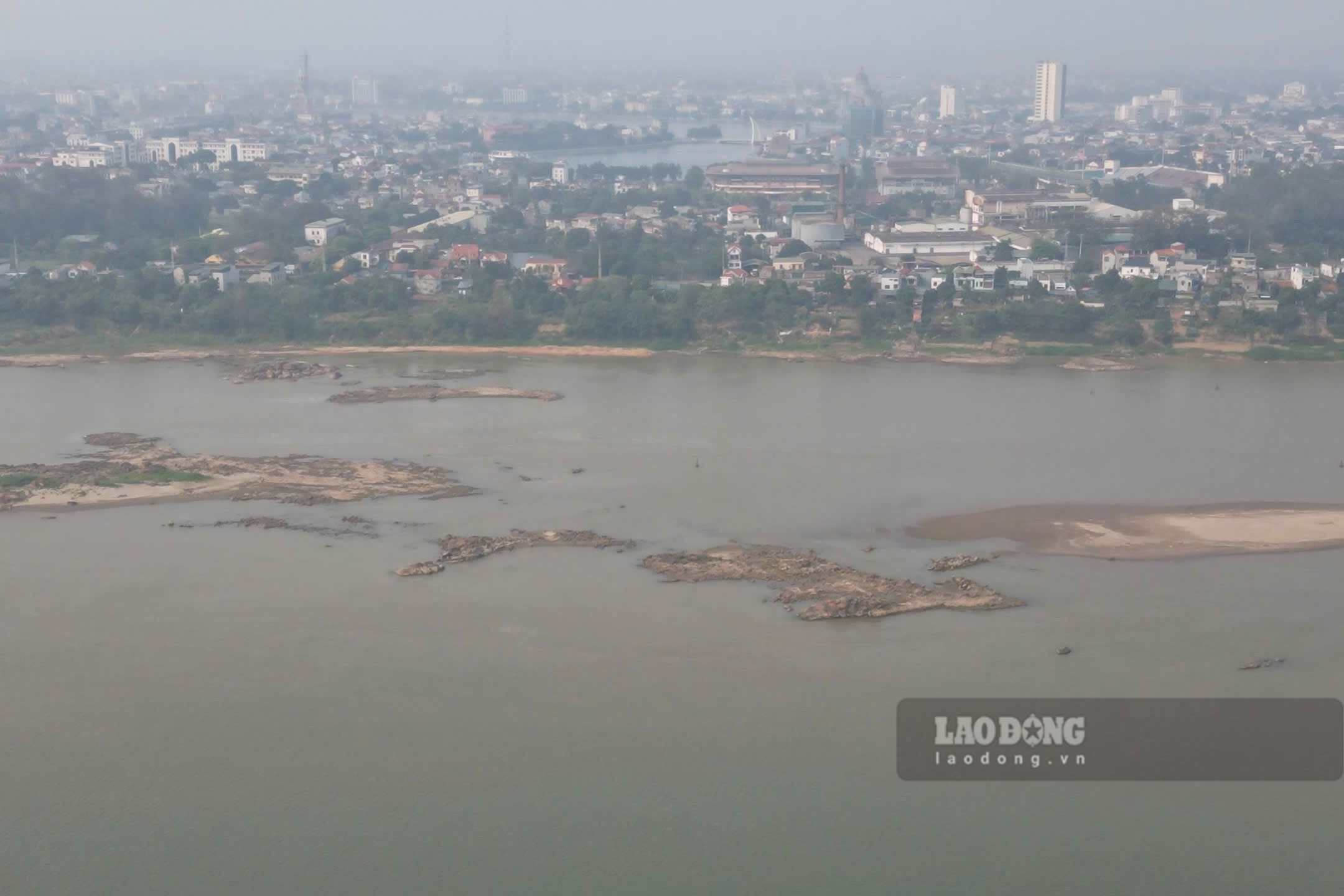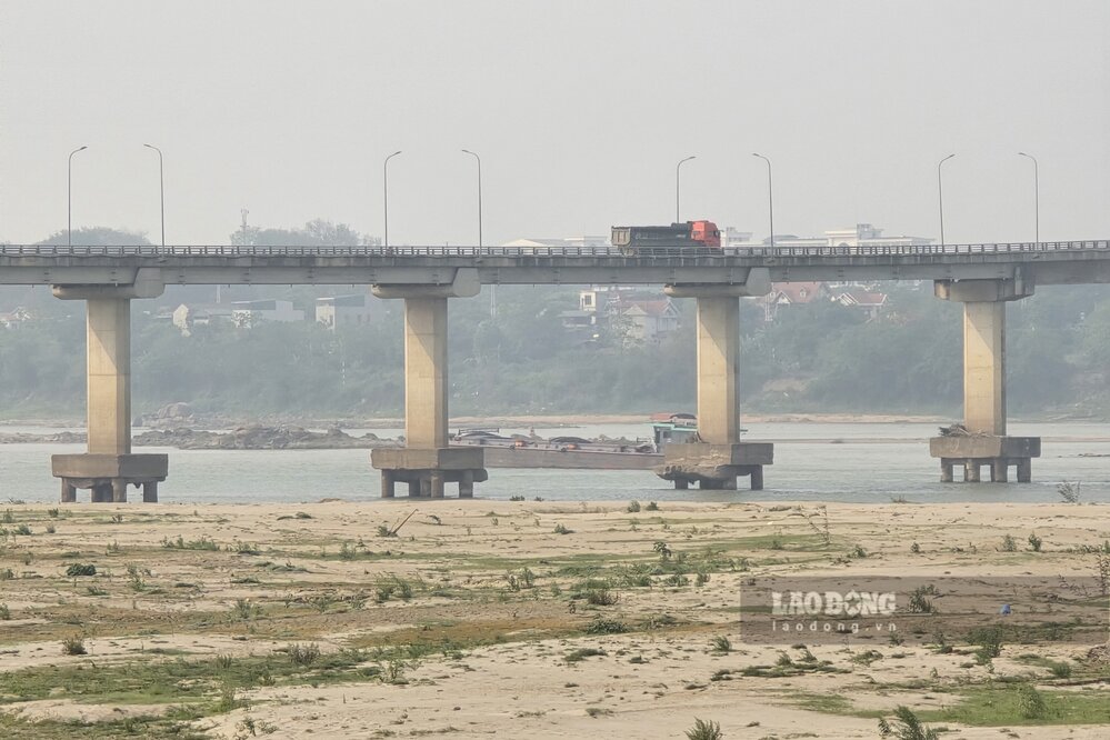 According to records of Lao Dong Newspaper reporters in the last days of March 2026, the river water is shallow, many sections of the river have narrow flows, at first glance as if walking through; alluvial grounds and sand dunes are rising everywhere.