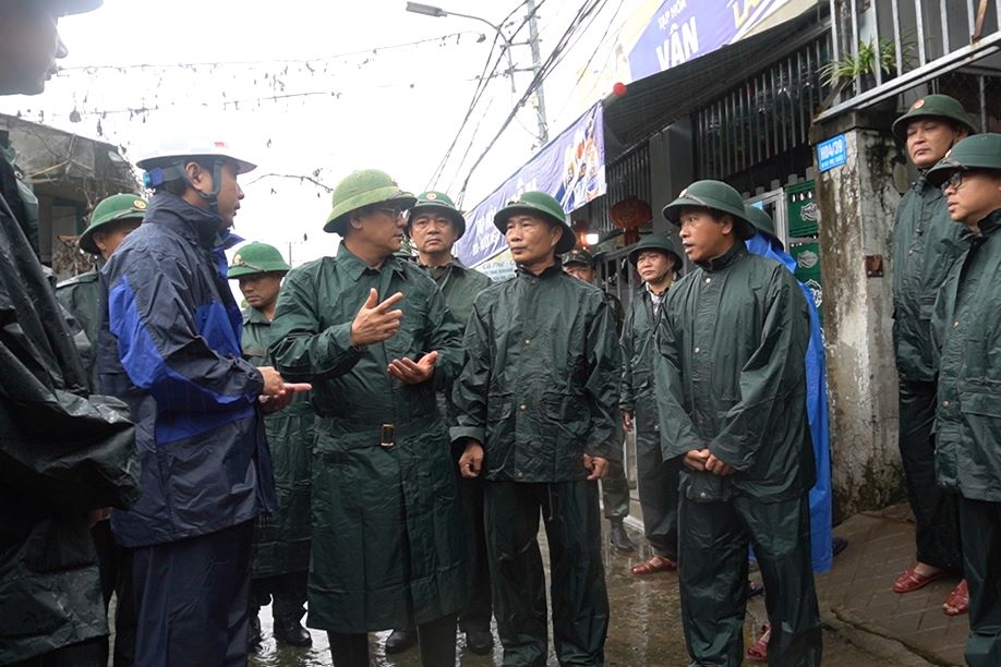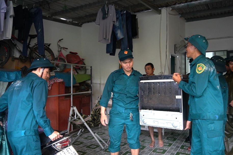 In that situation, on the morning of October 22, the Da Nang City Military Command also inspected every street and alley on Me Suot Street, the army, militia and functional forces also supported people to raise their belongings and make a list of people to evacuate.