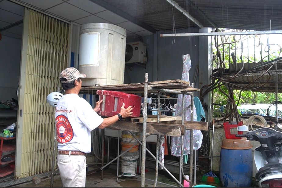 Every time I heard a heavy rain, my whole family was nervous and didn't dare sleep because I was afraid that the water would rise so quickly that I wouldn't be able to react. From the experience of previous floods, whenever we saw rain, we immediately moved our belongings up high and brought light items up to the attic, Mr. Tri shared.