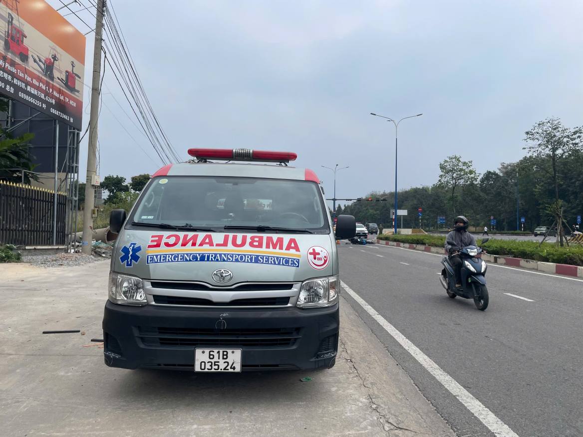 At the scene, the victim's body and motorbike were lying near the median strip on My Phuoc - Tan Van road. Mr. N.V.T's motorbike flew forward nearly 10m.