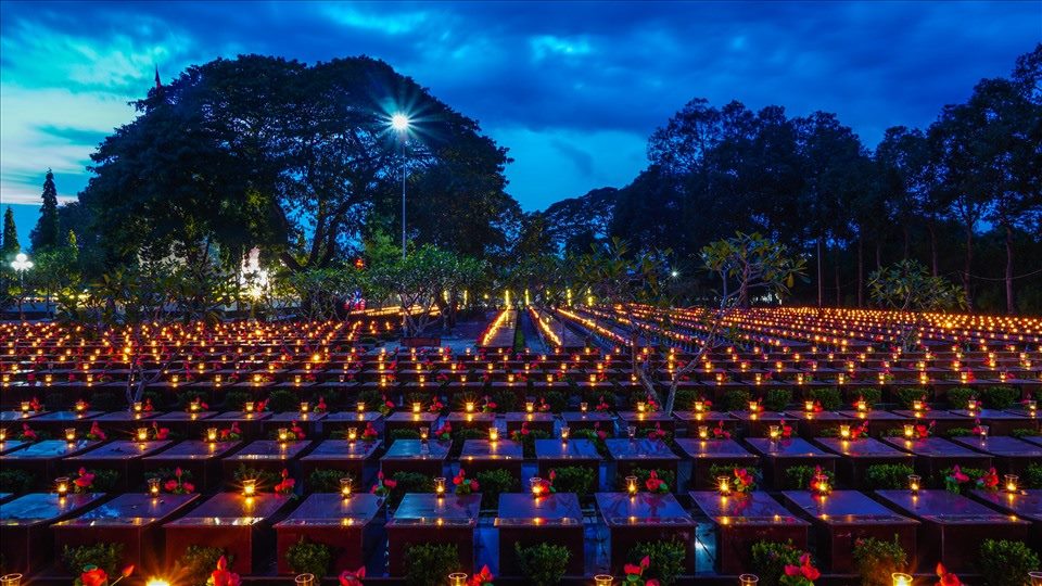 Next, the youth union members offered flowers and incense and at night lit thousands of candles to pay tribute to the heroic martyrs. At the same time, the youth of the whole province also organized a candlelighting gratitude program at martyrs' cemeteries and memorials throughout the province.