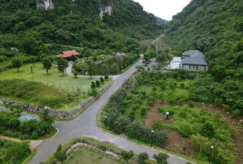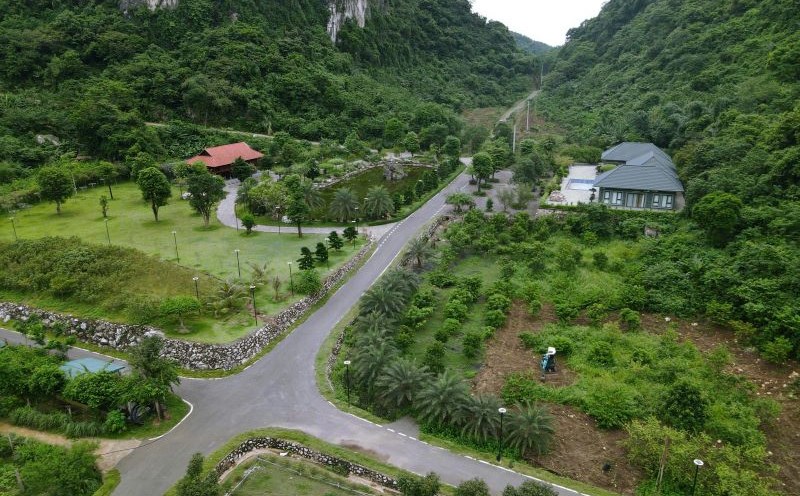 Of this area, Mr. Quy's family has built many structures such as houses, swimming pools, stone-paved yards, octagonal huts, and livestock barns.