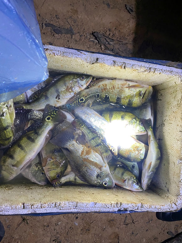 There are groups of people using large-capacity batteries, using three-phase electricity to pick up fish, causing fish in people's cages to jump out.