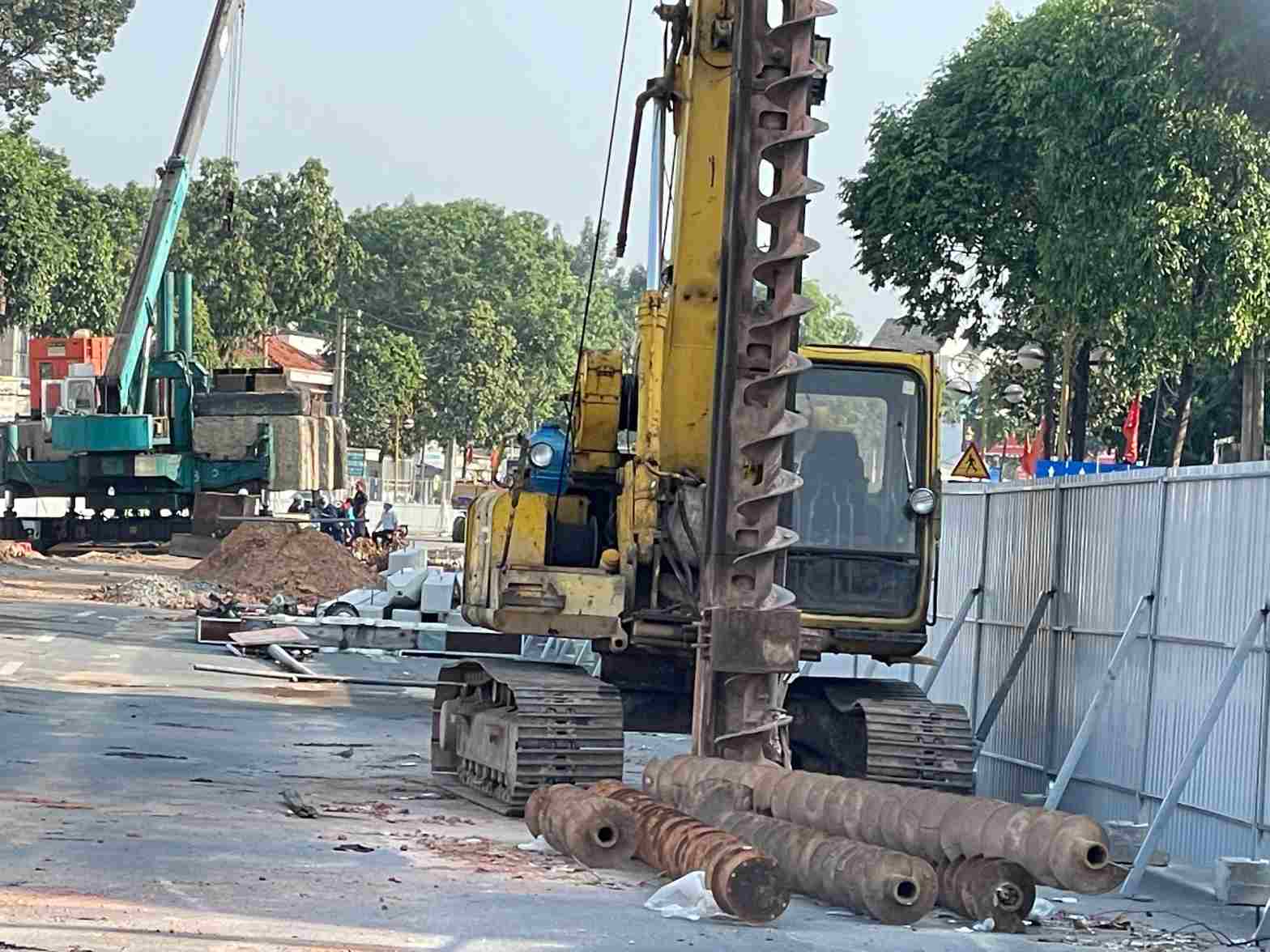 Inside the construction site, the contractor has gathered excavators, drills, and concrete pile driving machines. Engineers and workers are deploying the first items of the project.
