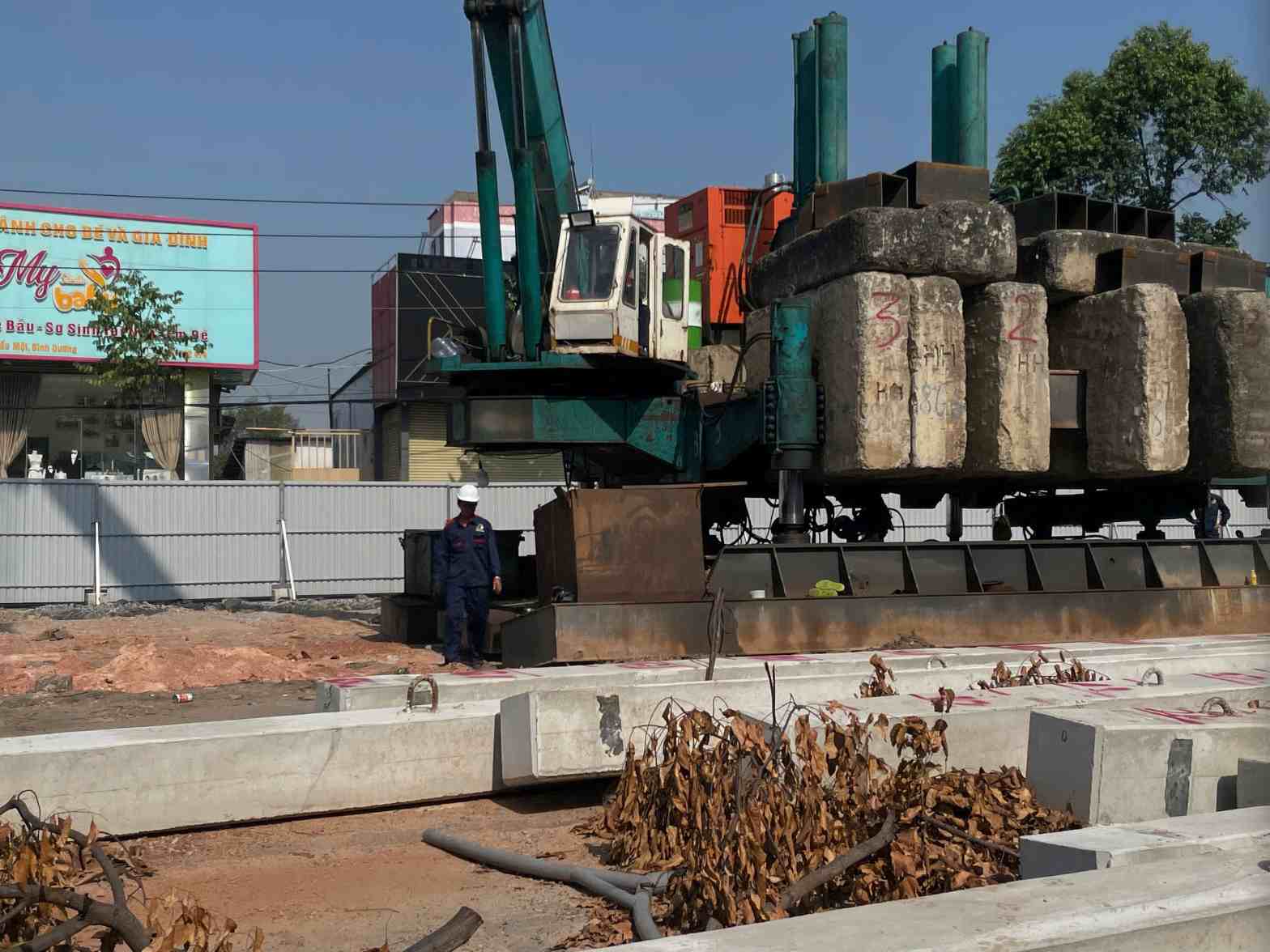 The construction site is located on the side of Pham Ngoc Thach street. A section of road about 200m from Binh Duong General Hospital to National Highway 13 is fenced with 3 car lanes on each side. Currently, vehicles can only circulate in 1 lane in each direction.