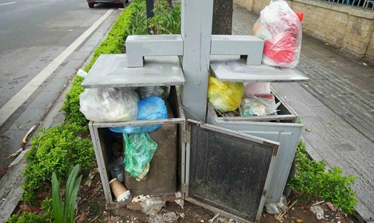 Some people even reported that the technology trash can be placed right at the bus stop on Nguyen Trai Street, giving off an unpleasant stench.In many locations, people are forced to throw garbage at the foot of the bins because the doors are blocked or the bins are full.The image of garbage strewn everywhere and smelling right at the foot of the "technology trash can" made people feel indignant.