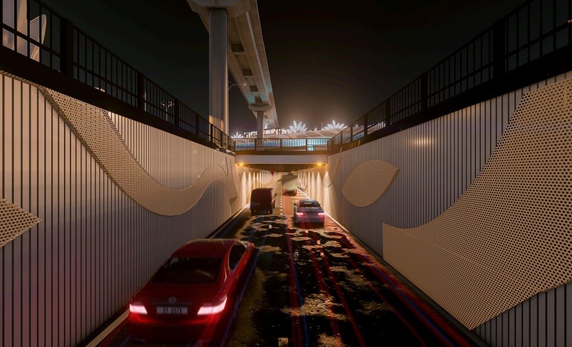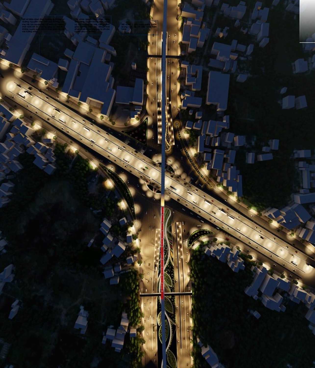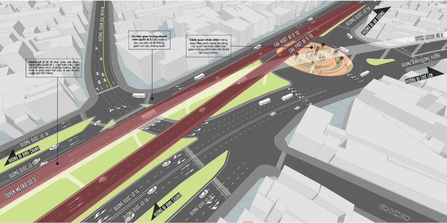 The basement includes two 4-lane two-way underpasses, directly connecting Nguyen Van Linh with the expressway. The ground floor organizes a central roundabout to divert traffic.
