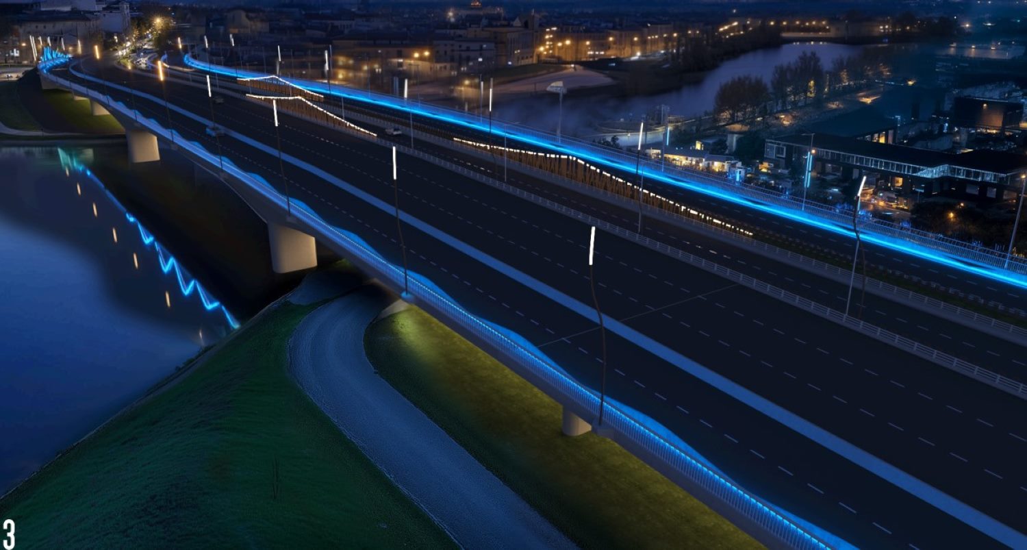 The upper floor is an overpass system, including an existing 4-lane bridge and two newly built parallel bridges. In addition, the project also arranges two pedestrian bridges on the expressway access road and Nguyen Van Linh Avenue.