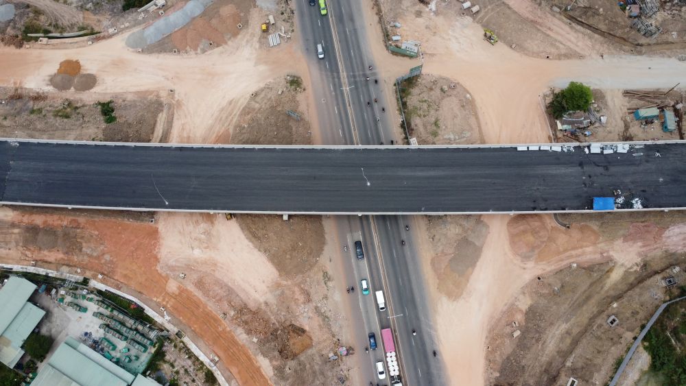 Notably, this construction package has an important intersection with National Highway 13. This section is built with an overpass and below is an access road connecting to National Highway 13.