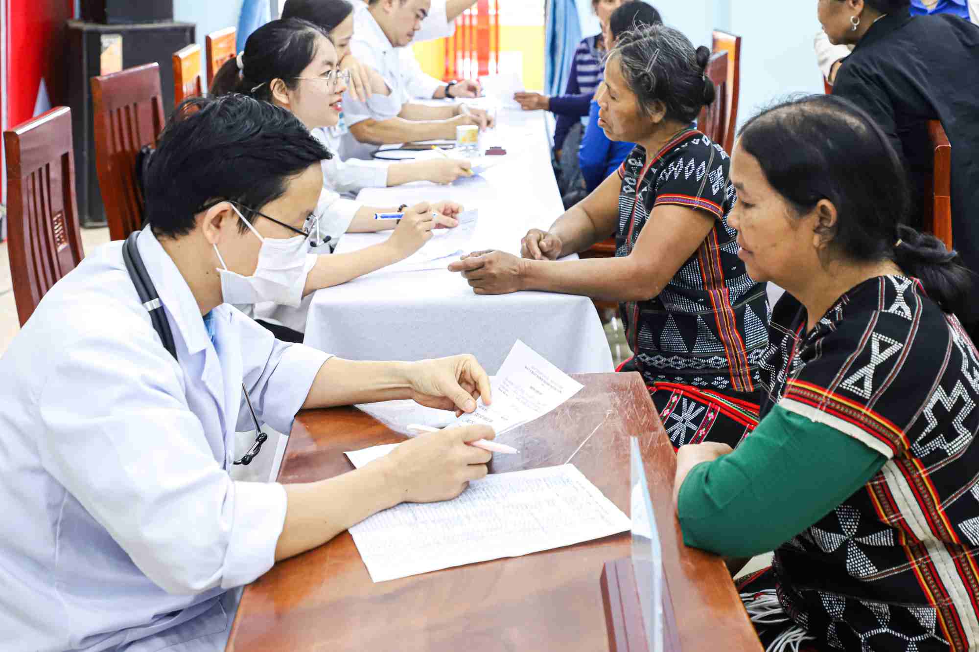 More than 100 doctors and nurses who are management officials and leading experts of end-line hospitals in Da Nang directly participated. Many basic and specialized medical equipment along with medicine and glasses were brought to serve people. In addition, Agribank in the Central region supported 4.5 tons of rice to donate to poor households in border areas.