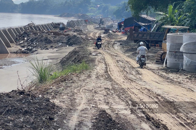 However, according to Mr. Hai, the progress is still slow compared to the plan due to land clearance problems. Because part of the embankment is overlapping with the land of the sand mining unit, the enterprise has not agreed with the land acquisition plan, causing the contractor to not be able to continuously construct.