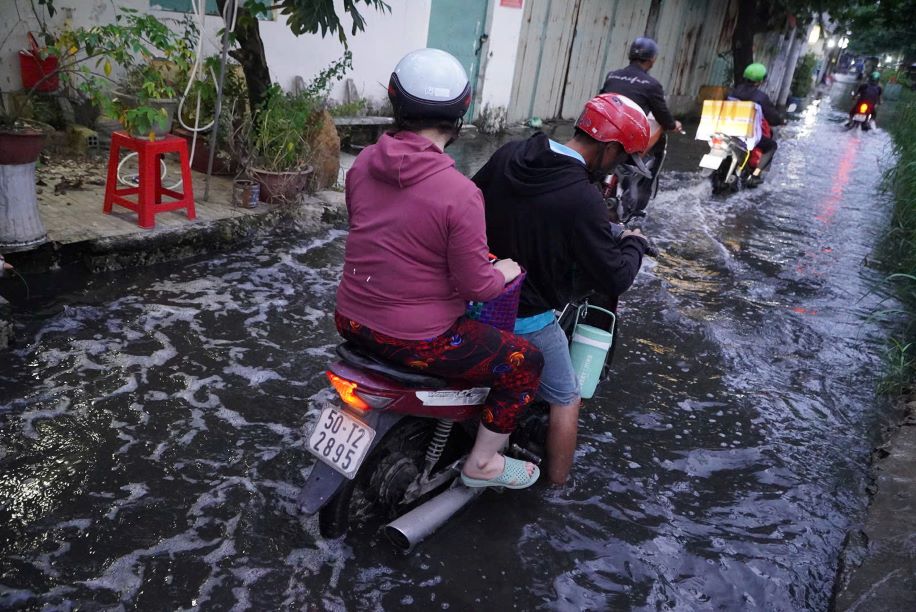 Ms. Tran Thi Thuy Van (Binh Dong ward) said that flooding has become a "normal thing" for people in the area. According to Ms. Van, her house was flooded before, then her family had to raise the foundation to reduce damage.