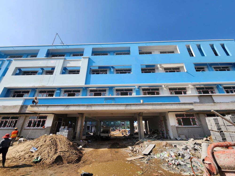 Recorded at the construction site, the rough part of the school is basically completed. Construction teams are speeding up the completion phase, including items: wall painting, tiling, installation of technical infrastructure and auxiliary works.
