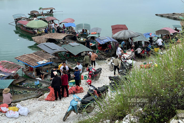 Mrs. Kha recalled that 3 days ago, when she heard the announcement that the lake water level was rising, she and her son hurriedly brought a tarp up to the hill behind the house, cut down a dozen bamboo trees and built a temporary hut to escape the flood.