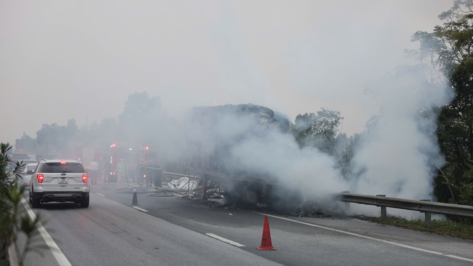 Currently, the fire is basically under control. The front of the vehicle was removed from the trailer to prevent the fire from spreading. The tractor was then brought to a safe area a few dozen meters from the scene, creating space for the fire fighting force to approach and handle the fire.